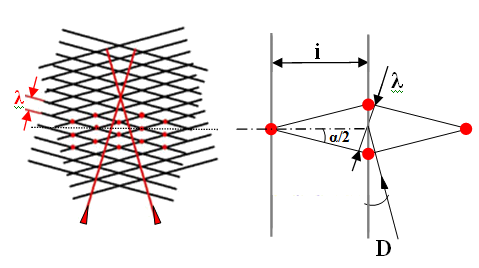 En examinant le schéma précédent, on en déduit que sin (α/2) = λ/2i