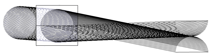 Les fronts d’onde produits par le biprisme sont assimilables à des plans et si l’on considère des surfaces équiphases successives, il est possible de modéliser le phénomène d’interférences grâce au schéma ci-dessous.