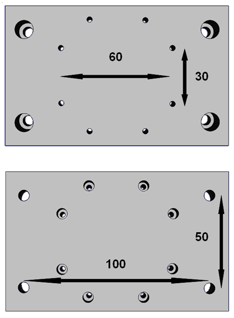 Trous lamés 4 ø 6 mm et 8 ø 3 mm