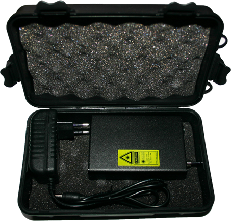 L’interrupteur situé sur un flanc du boîtier offre à l’expérimentateur une sélection portant sur l’émission d’un unique faisceau central ou simultanément de 3 ou 5 faisceaux lumineux.